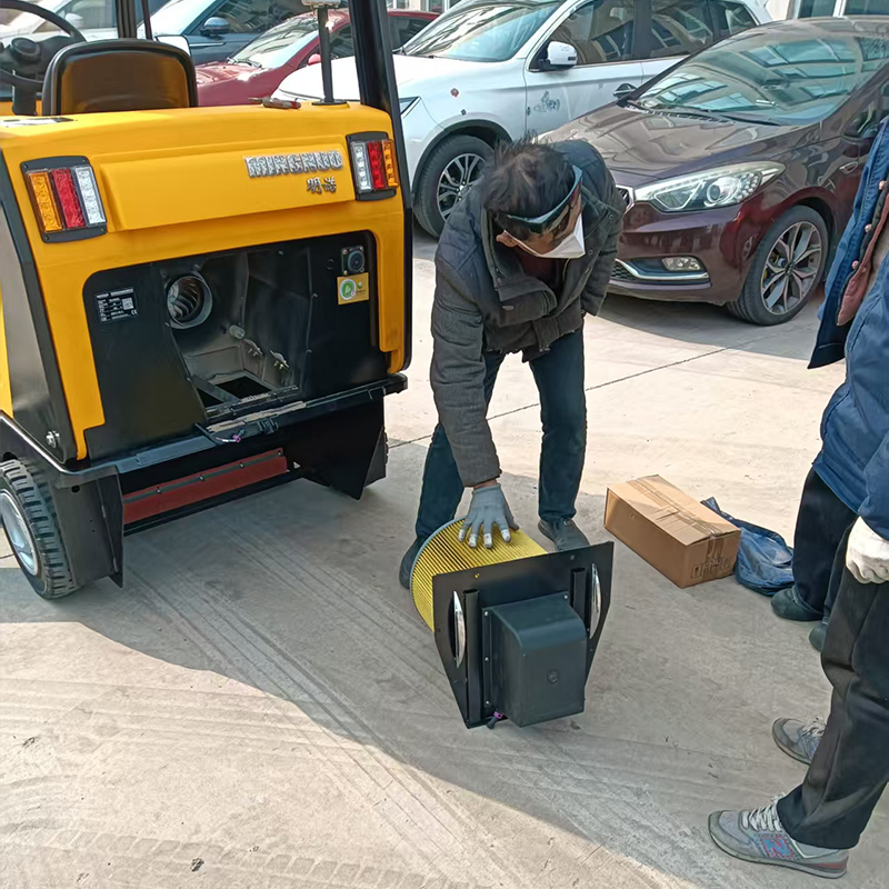 现场明诺售后师傅正在手把手的教会驾驶跟维修人员如何更换易损的配件,还有驾驶要点,为未来清扫效果达到最优。