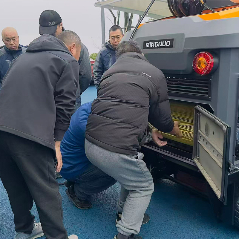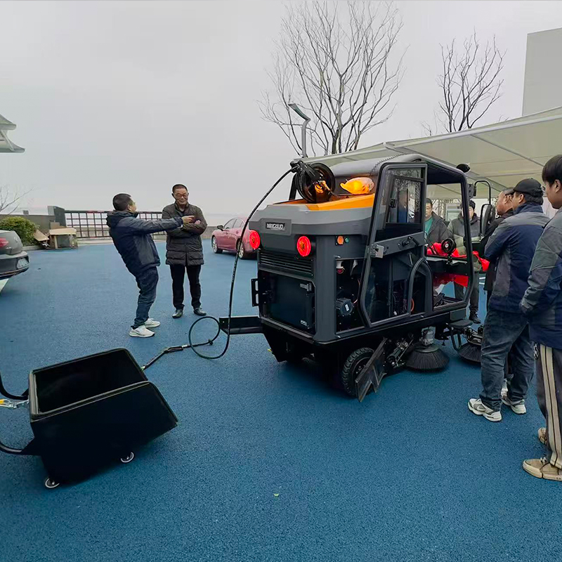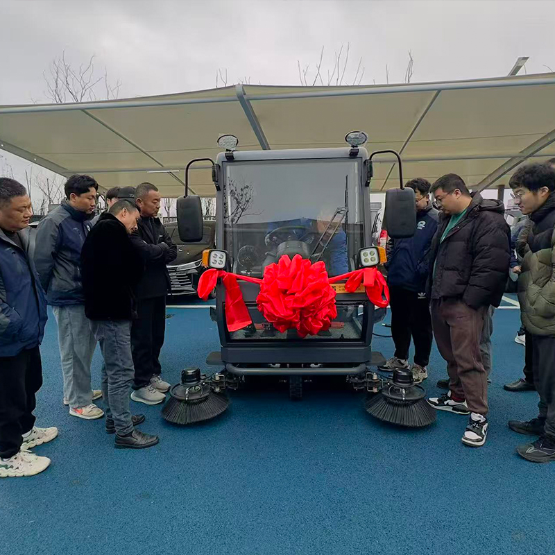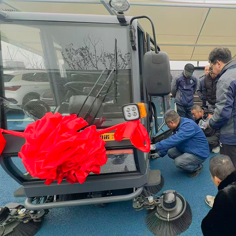 海宁市水利建设有限公司成功采购明诺E810FB 封闭式扫地机,交机仪式现场气氛热烈。客户满怀喜悦为新车佩戴大红花,以隆重仪式迎接新设备正式投入使用。明诺售后师傅抵达现场,全程耐心细致、手把手教学,详细讲解设备操作流程、日常保养要点及配件更换方法,确保每位操作人员都能熟练掌握、安全使用,为后续高效环卫作业提供坚实保障。
