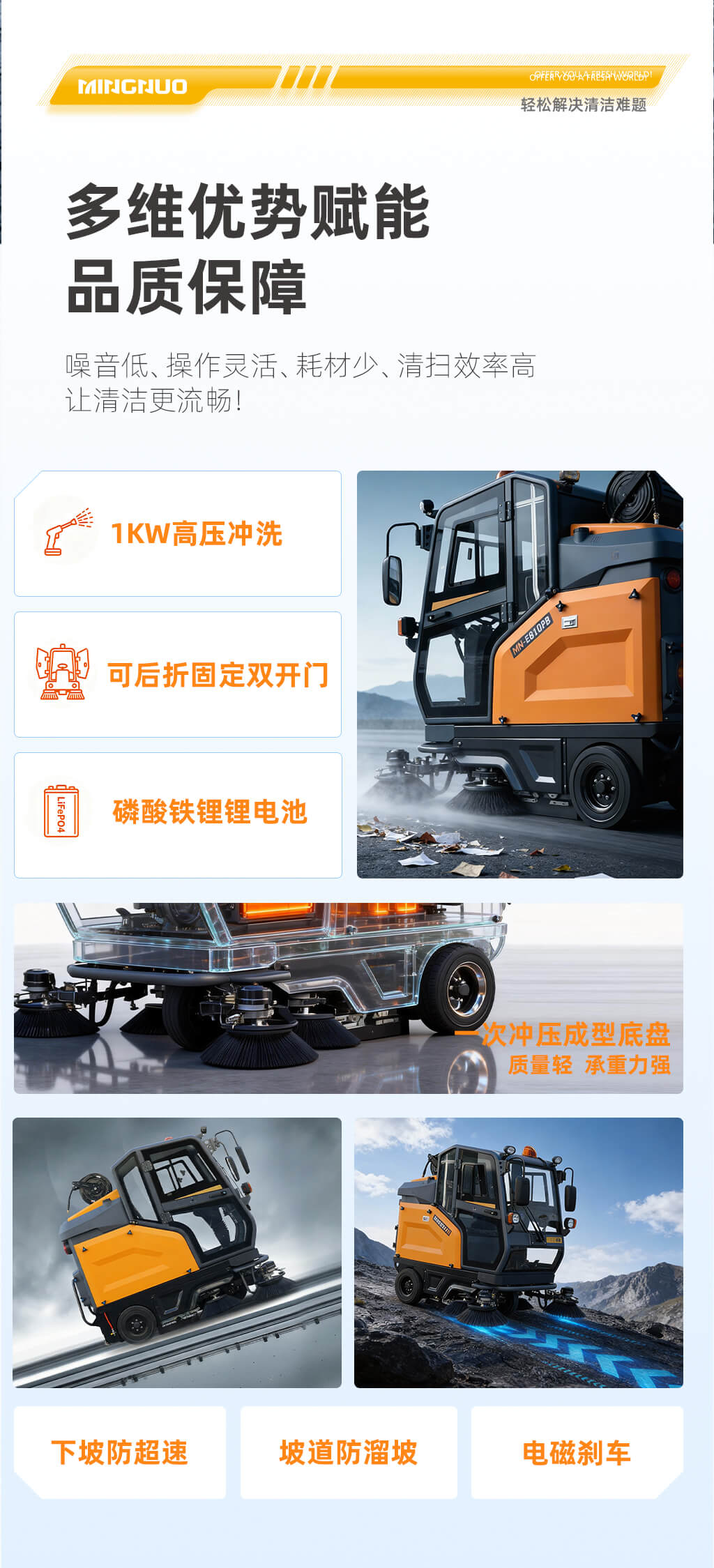 MN-E810FB电动封闭式大功率扫地机,具有噪音低、操作灵活、耗材少、清扫效率高等特点。适用于气候寒冷、飞沙粉尘多等恶劣环境下使用。特别适合煤矿、面粉厂、水泥厂、陶瓷厂、家具厂等,吸尘效果优于同类产品。