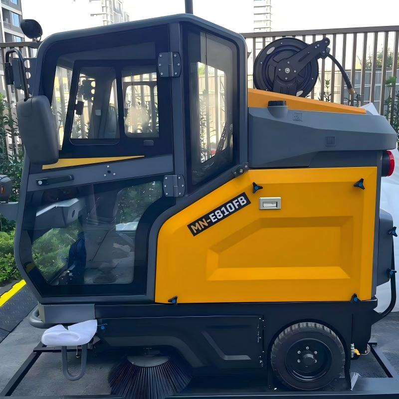 阜阳颍上县金色湖畔(高层洋房聚居区)携手南通明诺 MN-E810FB 电动封闭式大功率扫地机,打造人居清洁新标杆!针对小区道路、广场、绿化带周边等多场景清洁需求,这款设备以硬核实力焕新居住环境。 大功率双电机驱动加持,吸扫同步高效作业,轻松应对落叶、粉尘、碎屑等各类垃圾,清扫效率较人工提升 80%,覆盖小区公共区域无压力。全封闭驾驶舱设计,隔绝扬尘与噪音,守护保洁人员健康的同时,避免打扰居民生活,适配居民区敏感环境。 电动驱动实现零排放零污染,契合绿色社区理念,低能耗续航满足全天清洁需求。灵活操控搭配智能清扫系统,狭窄通道、楼栋拐角皆能精准覆盖,不留清洁死角。 从晨光初现到暮色降临,明诺 MN-E810FB 以科技力量为金色湖畔筑牢洁净防线,让业主漫步其间,目之所及皆清爽。专业清洁设备,赋能品质人居,南通明诺为更多社区提供高效环保的清洁解决方案!